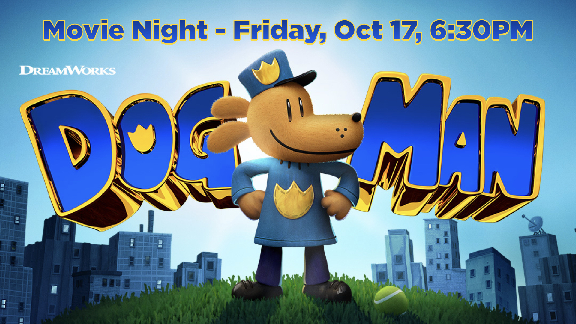 Invite your friends and family to watch Dog Man, a family-friendly movie about a police officer who is half man and half dog!